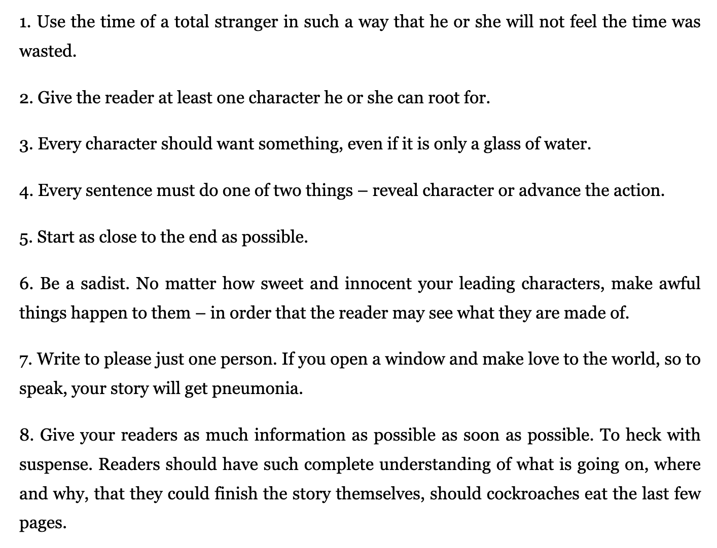 Alex Garcia On Twitter Kurt Vonnegut S 8 Tips On How To Write A Short Story Https T Co Vewlbz9hef Twitter